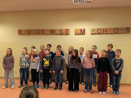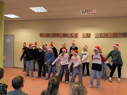 An unserer Grundschule fand eine ganz besondere vorweihnachtliche Stunde statt: Jede Klasse hatte ein Weihnachtslied vorbereitet und sang es nacheinander vor. So entstand ein abwechslungsreiches und stimmungsvolles Programm, das die gesamte Schulgemeinschaft zusammenbrachte. Die Kinder sangen mit viel Freude und Engagement und im ganzen Schulhaus war die weihnachtliche Stimmung deutlich zu spüren.