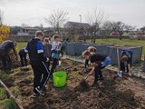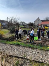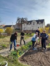 Am 24. März 2026 wurde es im Schulgarten unserer Grundschule wieder richtig aktiv: Die Neigungsgruppe „Schulgarten-Atelier“ schlüpfte in ihre Gartenkleidung und nahm sich mit viel Schwung das erste Beet vor. Mit großem Einsatz und sichtbarer Freude wurde fleißig gegraben, gelockert und vorbereitet – ein gelungener Start in die neue Gartensaison.