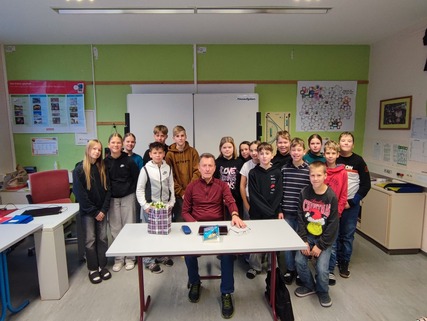 Zum Vorlesetag 2025 war der Bürgermeister Herr Bruntsch der Gast der Klasse 6b. Er hatte sich das Buch „Die Vorstadtkrokodile“ ausgesucht. Die Schüler erfuhren von den gefährlichen Abenteuern einer Bande. Leider verging die Stunde viel zu schnell und die Schüler wollten gern noch mehr hören. Aber Herr Bruntsch schenkte der Klasse das Buch, sodass sich jeder das Buch ausleihen und die Geschichte weiterlesen kann.