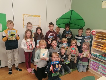 Zum Schluss erhielt auch in Klasse 2b jedes Kind noch sein eigenes Buch, welches sich jeder im Rahmen der Aktion „Lesen ist Leben“ vom Land Brandenburg selbst aussuchen konnte.