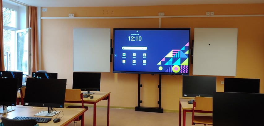 Auch wurden durch Herrn Müller der Firma Copythek 8 Interaktive Tafeln in den Klassenräumen angebaut und installiert.