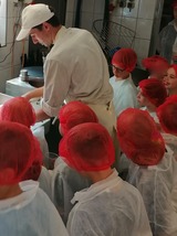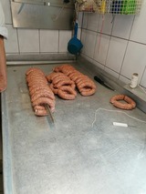 Dass ein Knacker eine Rohwurst ist und wie diese Wurst entsteht, erfuhren die Kinder der Klasse 1b aus der Grundschule Großkmehlen am 05.06.2024. Zuerst mussten sich alle Kinder aus hygienischen Gründen einen Besucherkittel, Überschuhe und eine Haube anziehen. Damit sahen alle wirklich witzig aus. Danach wurden die Hände ordentlich geschrubbt und schon konnte es losgehen mit einer kleinen Führung durch die Fleischerei. Herr Nicklisch beantwortete dabei sehr geduldig alle Fragen. Anschließend ging es in den Kühlraum, um das halbe Schwein zu holen. Mit Stechschutzhandschuh und Stechschutzschürze zeigte uns Herr Nicklisch wie man ein Schwein zerlegt und welche Teile für die Knacker verwendet werden. Anschließend wurde gewürzt und gewolft. Auch beim Befüllen des Schweinedarms mit Wurstmasse sahen alle gespannt zu. Am Ende gab es sogar für jedes Kind noch eine leckere Bratwurst. Die Knacker müssen noch etwas warten, bis sie verspeist werden können. Der Tag in der Fleischerei war wirklich sehr spannend und wir möchten uns noch einmal ganz herzlich bei der Fleischerei Bennewitz dafür bedanken, dass sie uns an diesem Tag als neugierige Gäste empfangen hat!