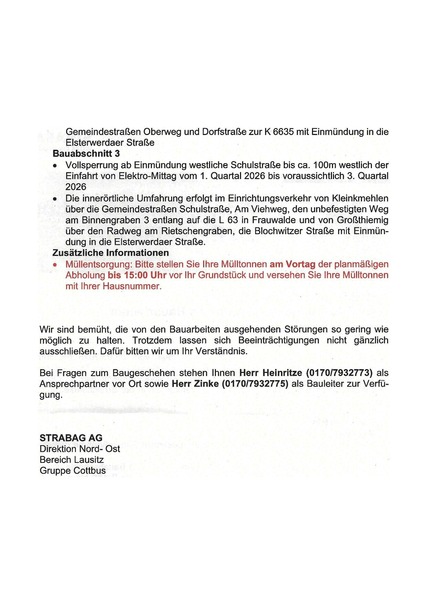 Hier finden Sie die aktuellen Anwohnerinformationen zur Straßensperrung in Großkmehlen.