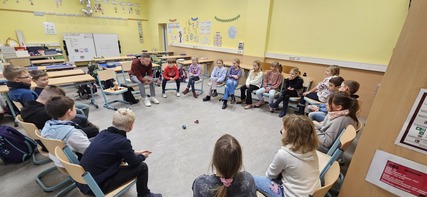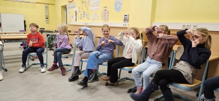 In der Klasse 3a schenkte Herr Biebach den Kindern zum Vorlesetag einen besonders einfühlsammen Moment, als er eine Geschichte aus dem Buch „Gloria und die Giraffensprache-Schule“ vorlas. Immer wieder hielt er inne, stellte Fragen, die zum Nachdenken anregten und das eigene Handeln in den Blick rückten. Wer etwas beitragen wollte, durfte einen der kleinen mitgebrachten Züge nehmen. Dadurch entstand eine offene und respektvolle Gesprächsatmosphäre. Zum Abschluss probierten die Kinder spielerisch, wie man Gefühle ausdrücken und bei anderen erkennen kann.
