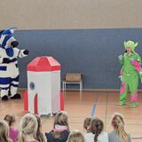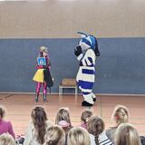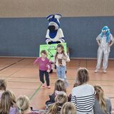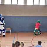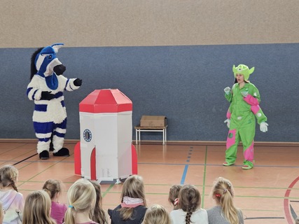 Das Stück „ZeBra auf intergalaktischem Abenteuer“ wurde in unserer Turnhalle aufgeführt. Ziel des ZeBra-Theaters ist es, dass die Kinder spielerisch wichtige Verkehrsregeln lernen. Auf lustige Weise erfuhren die Kinder, warum Schützer beim Roller fahren unentbehrlich sind, wieso man unbedingt Vorfahrtsregeln beachten muss und was beim Überqueren einer Straße wichtig ist.